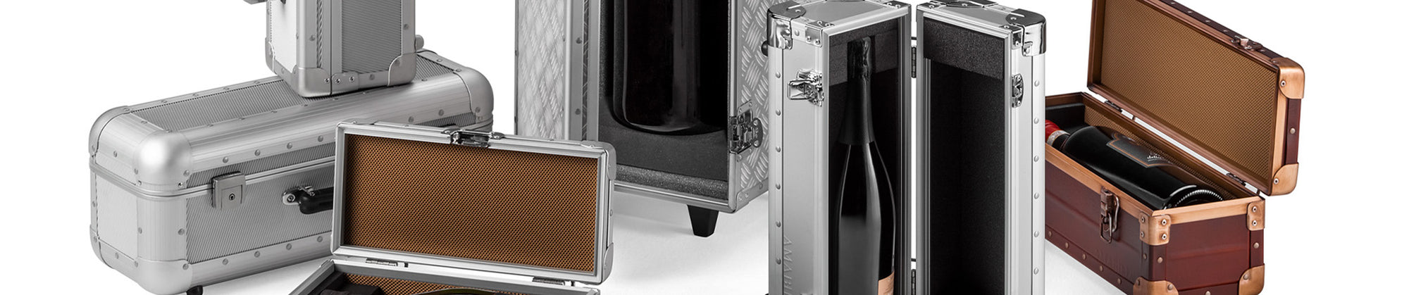 Sono realizzati in fibra vulcanizzata e alluminio, con profili di chiusura in alluminio. Le maniglie sono realizzate in morbida pelle mentre l'allestimento interno è realizzato con polietilene espanso spesso 10mm.